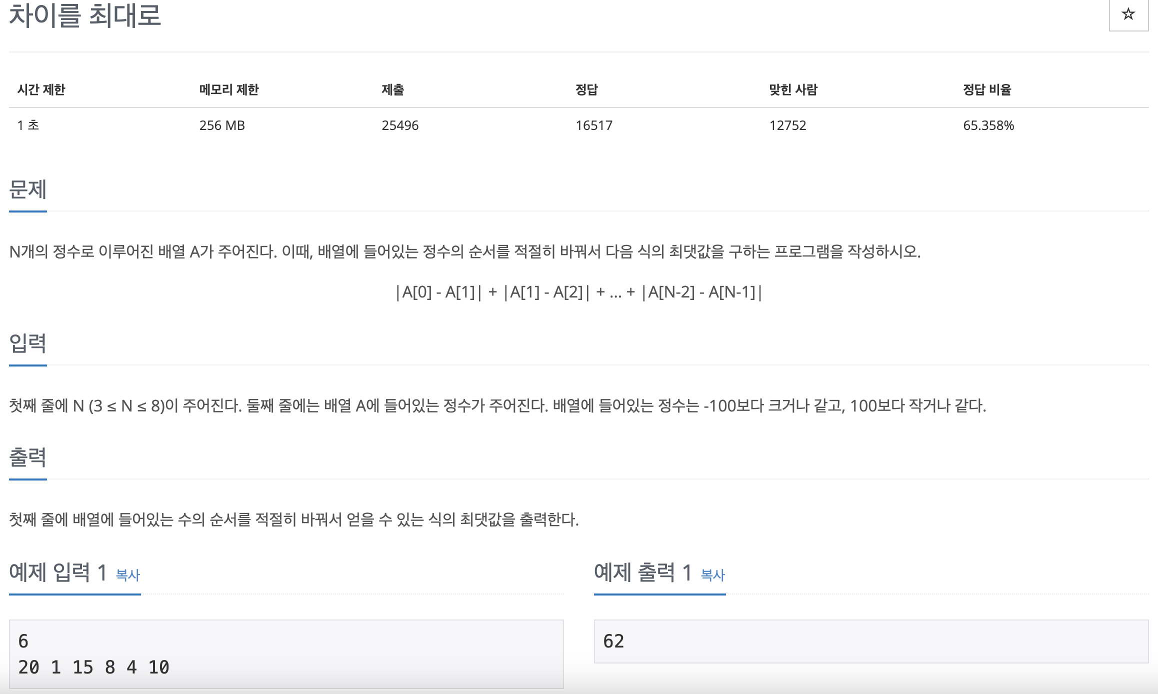 # per안의 순열들의 차이(s)를 구해 s가 res보다 클시에 업데이트