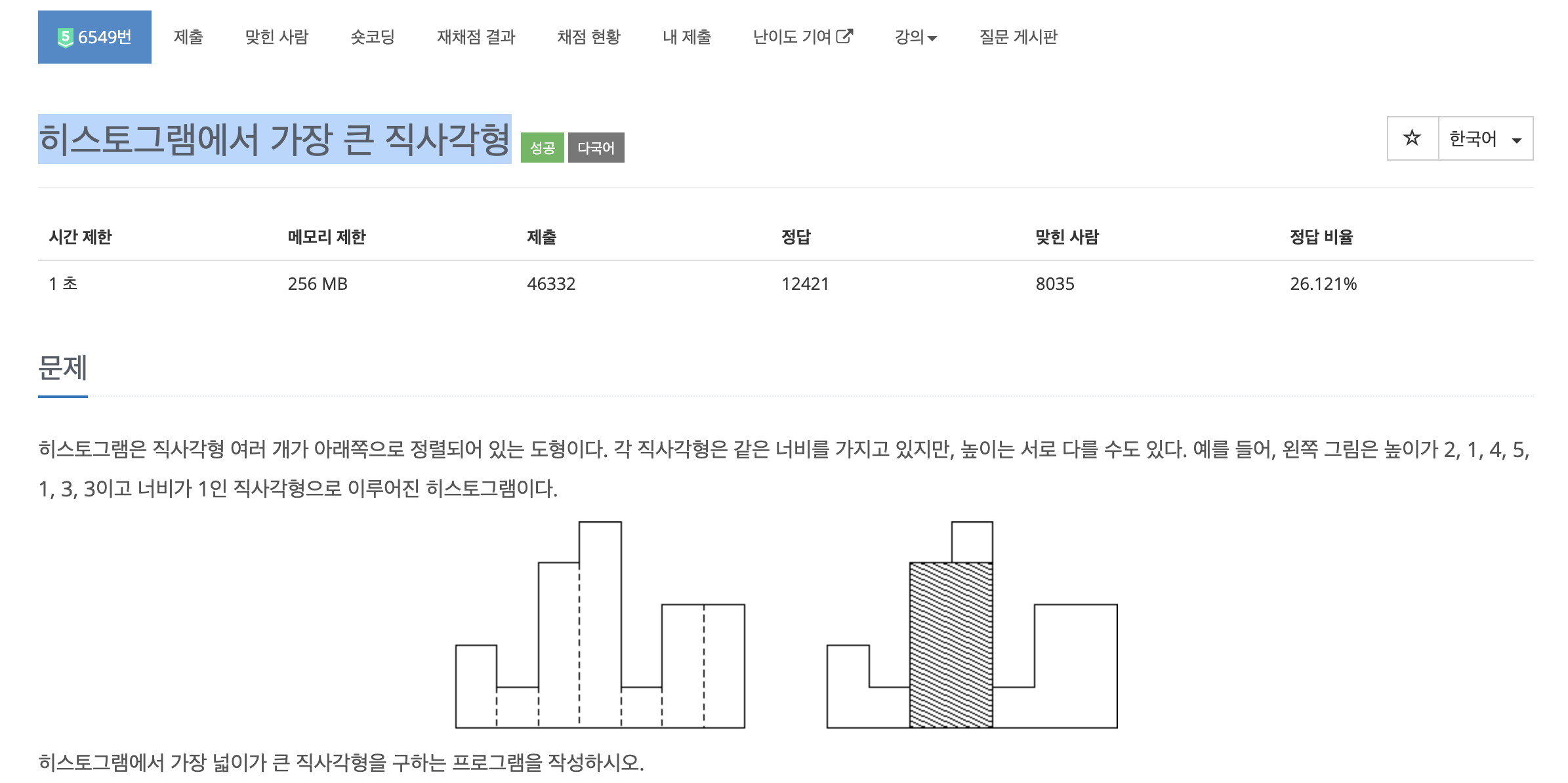 big_square = max(big_square, min_height * width) # 기존의 big_square와 갱신된 넓이 비교