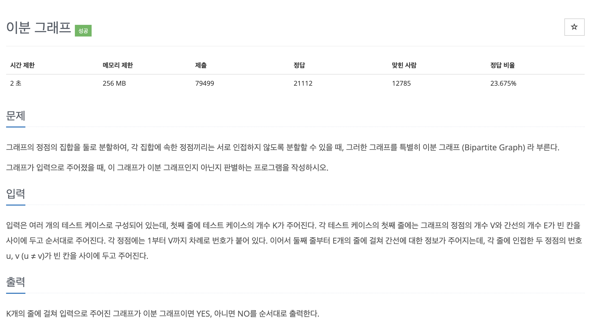 문제링크:https://www.acmicpc.net/problem/1707