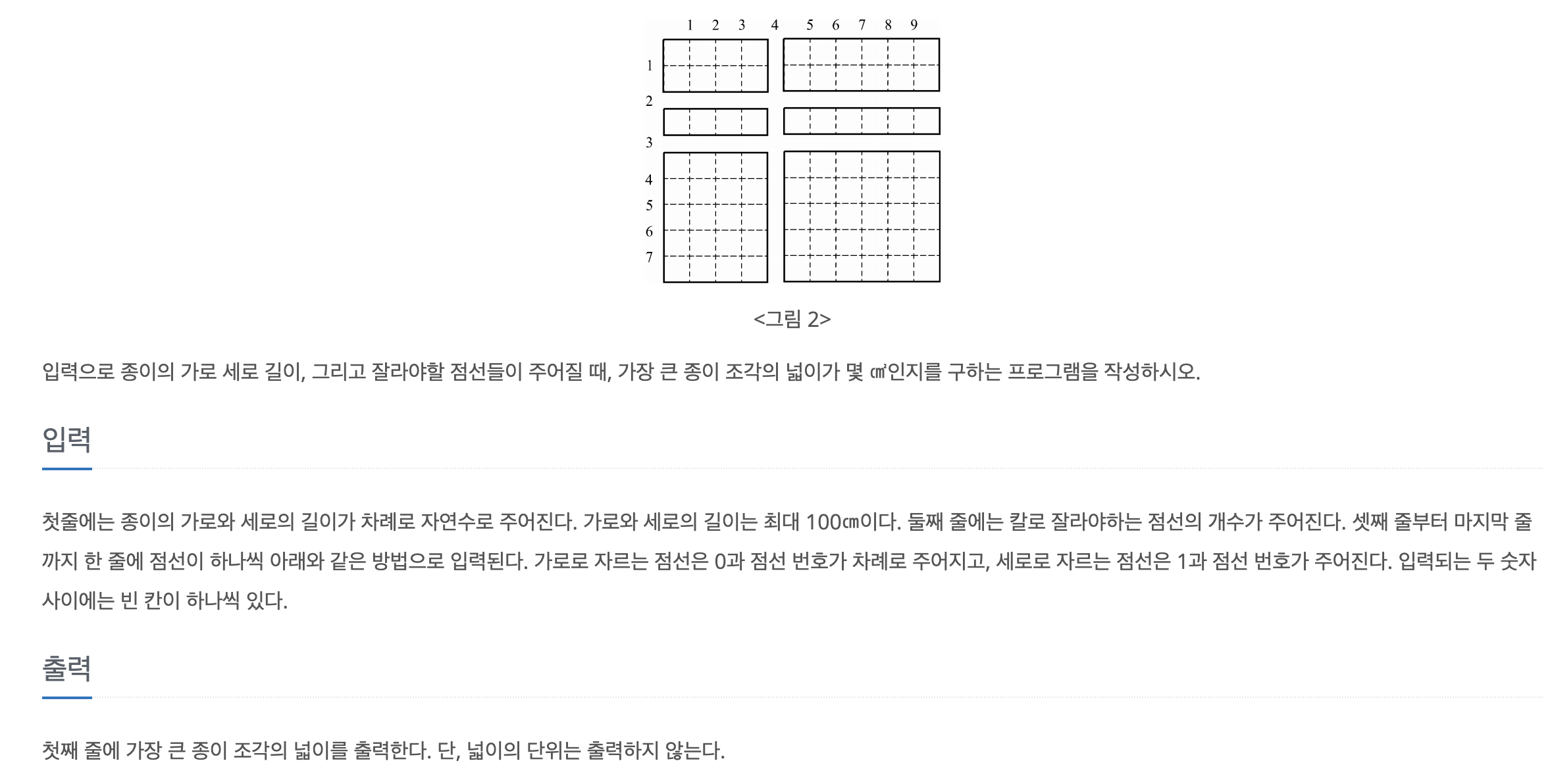 #이유 -> 종이를 xy로 생각했을떄 0,0 좌표가 있어야 최대 넓이값 구할떄 오류 발생 x